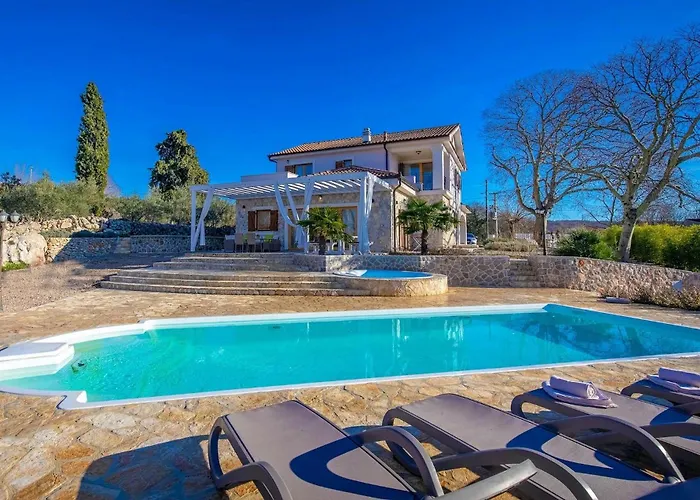 Situated around a 15-minute ride from the 12th - century bayside fortress "Frankopan Castle", the 4-bedroom Villa Laria Brusici includes a private swimming pool, as well as a hot tub and a sauna to relax in.